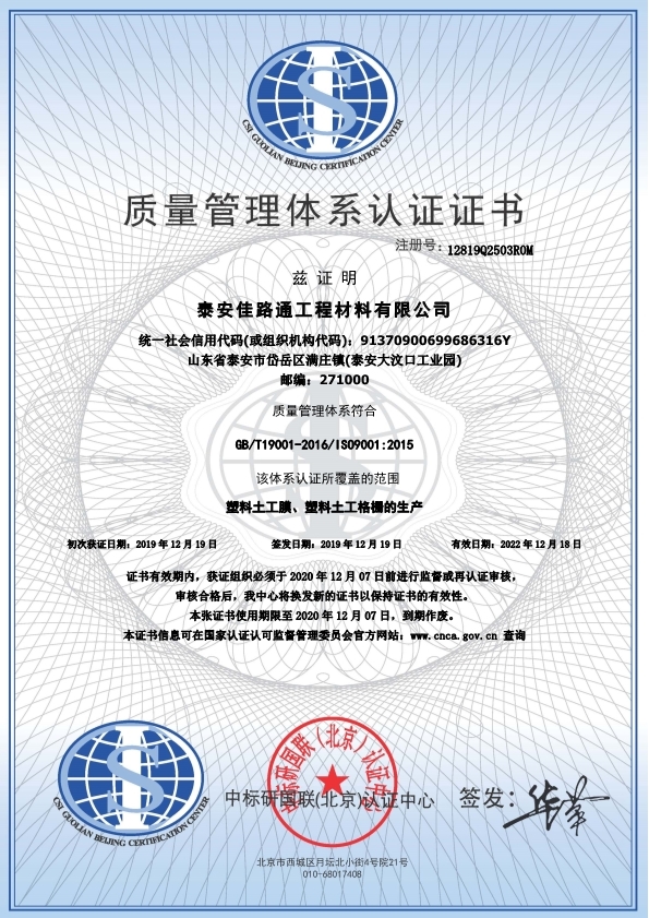 質(zhì)量管理體系認(rèn)證證書